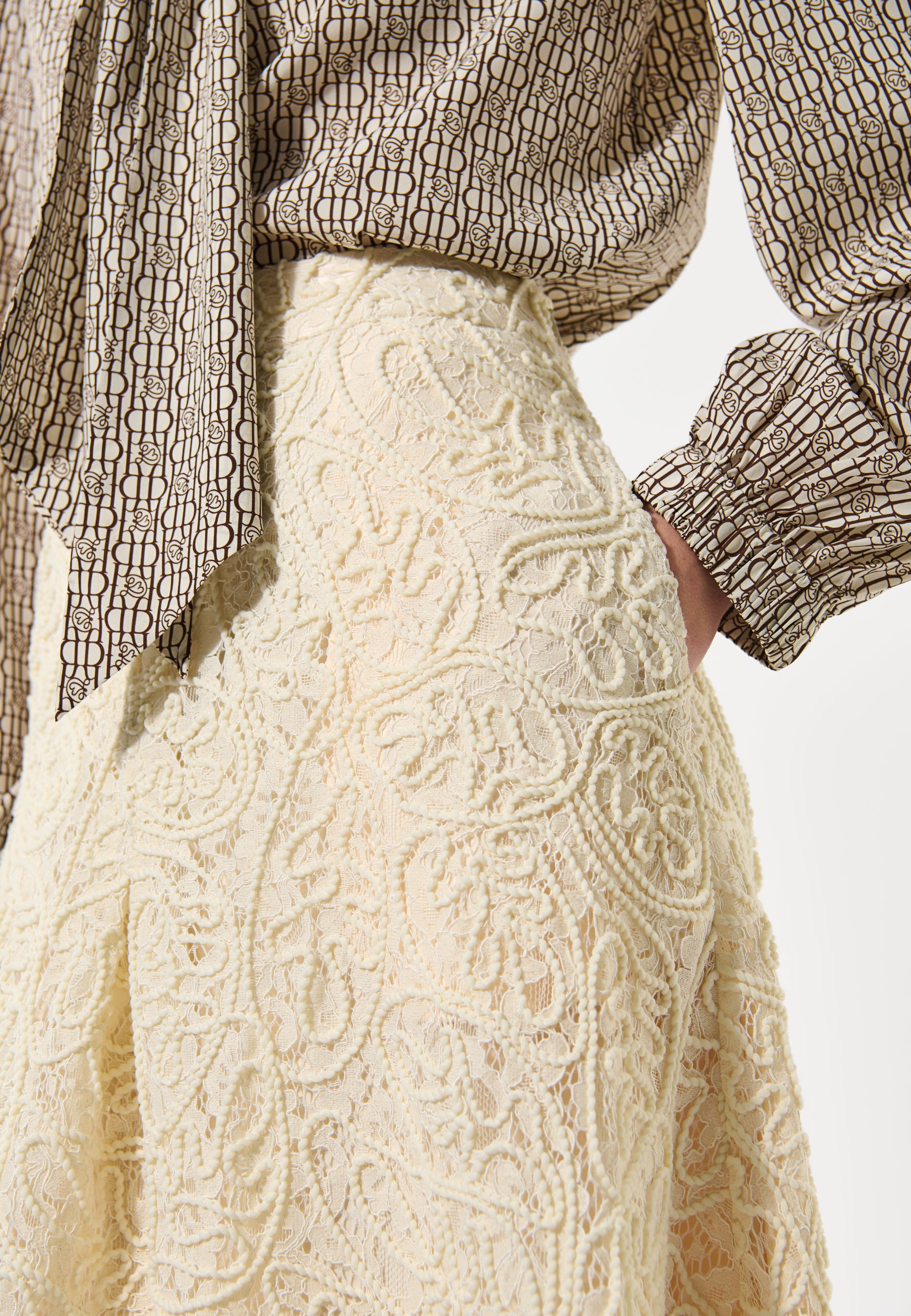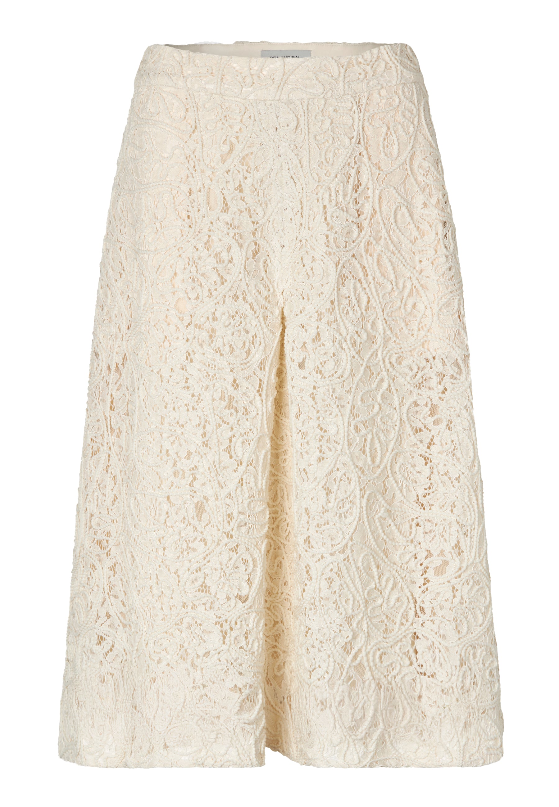 Skøn midi lang nederdel med wienerlæg i råt blonde materiale.