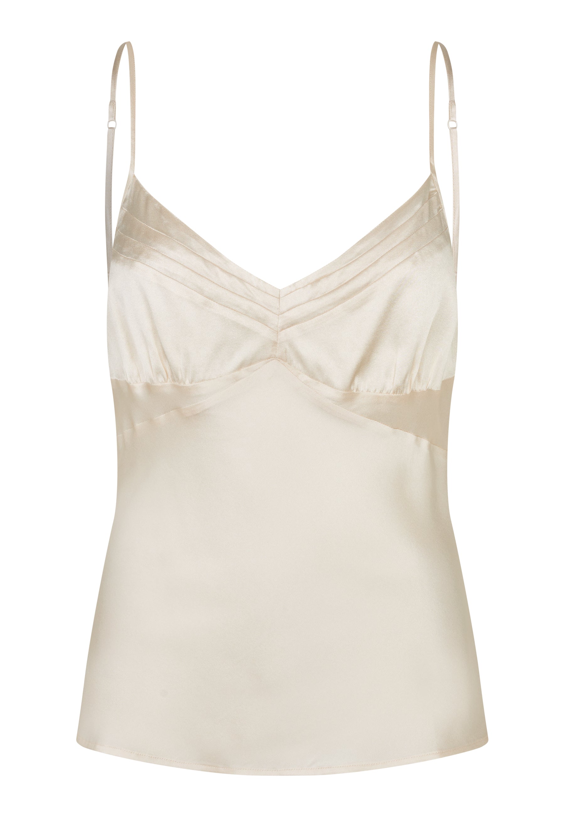 Smuk klassisk silketop med empireoverskæring, v-udskæring og tynde justerbare stropper.