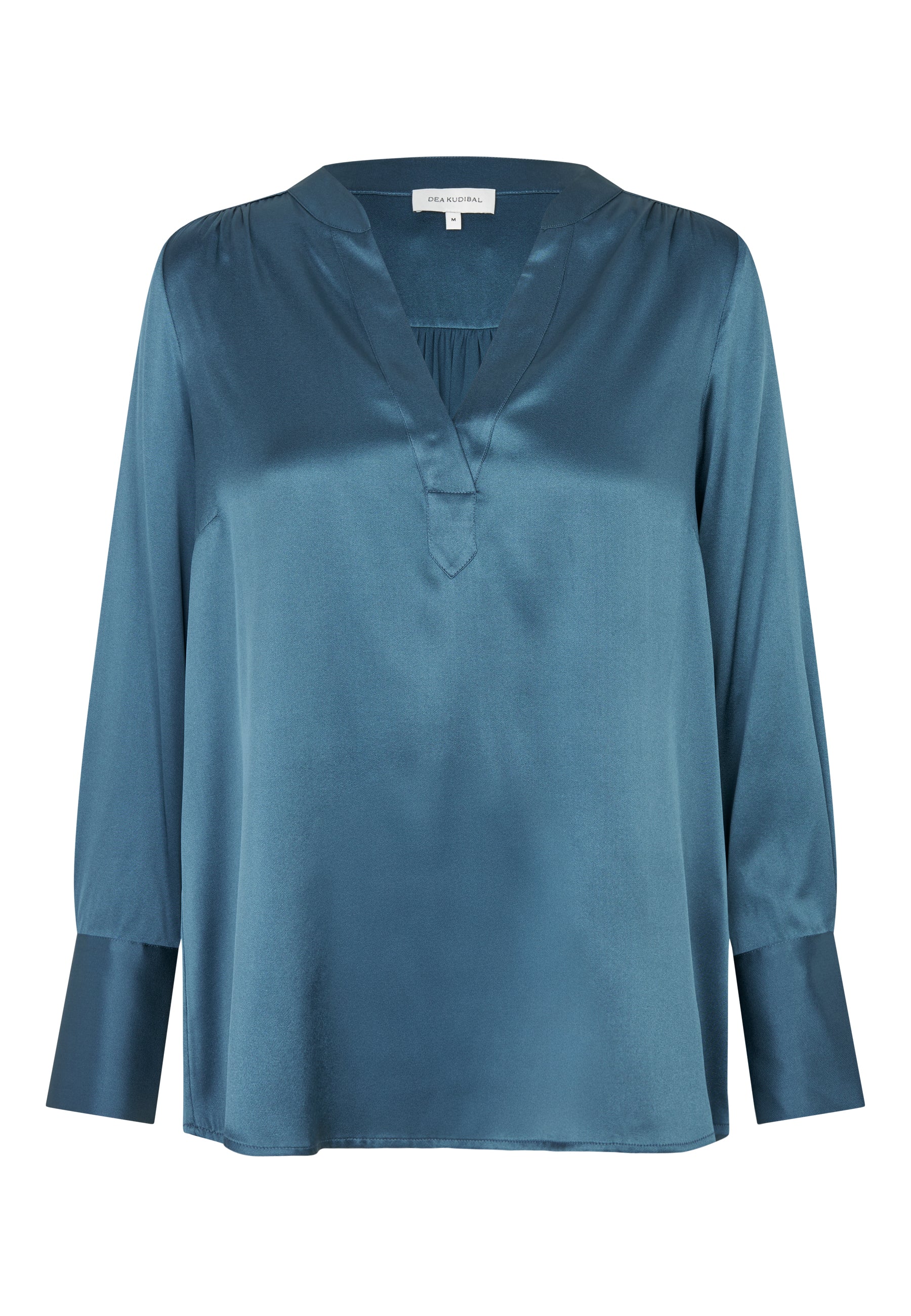 Silke tunika med V-udskæring, bærestykke med rynk for og bag samt smukke høje manchetter.