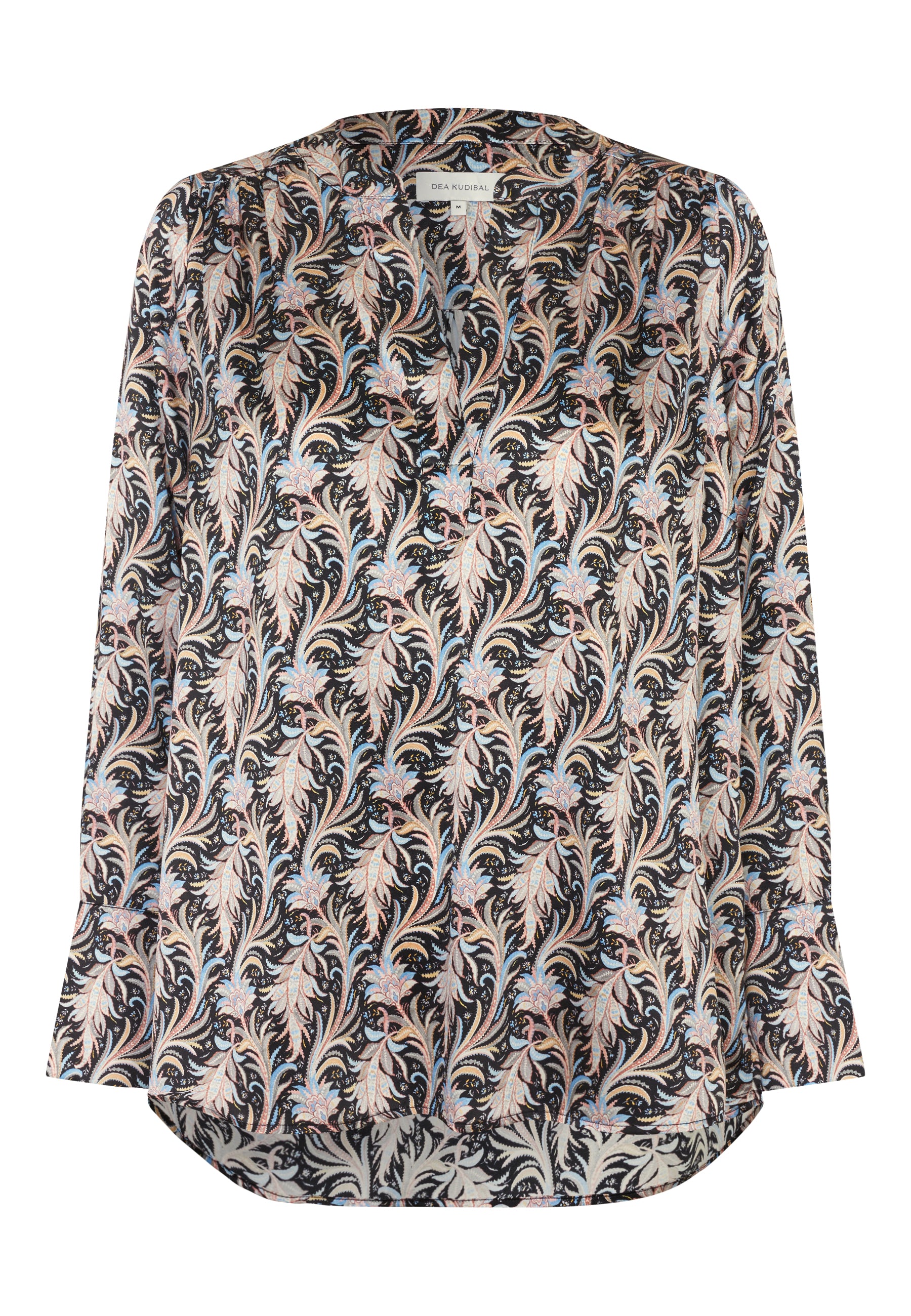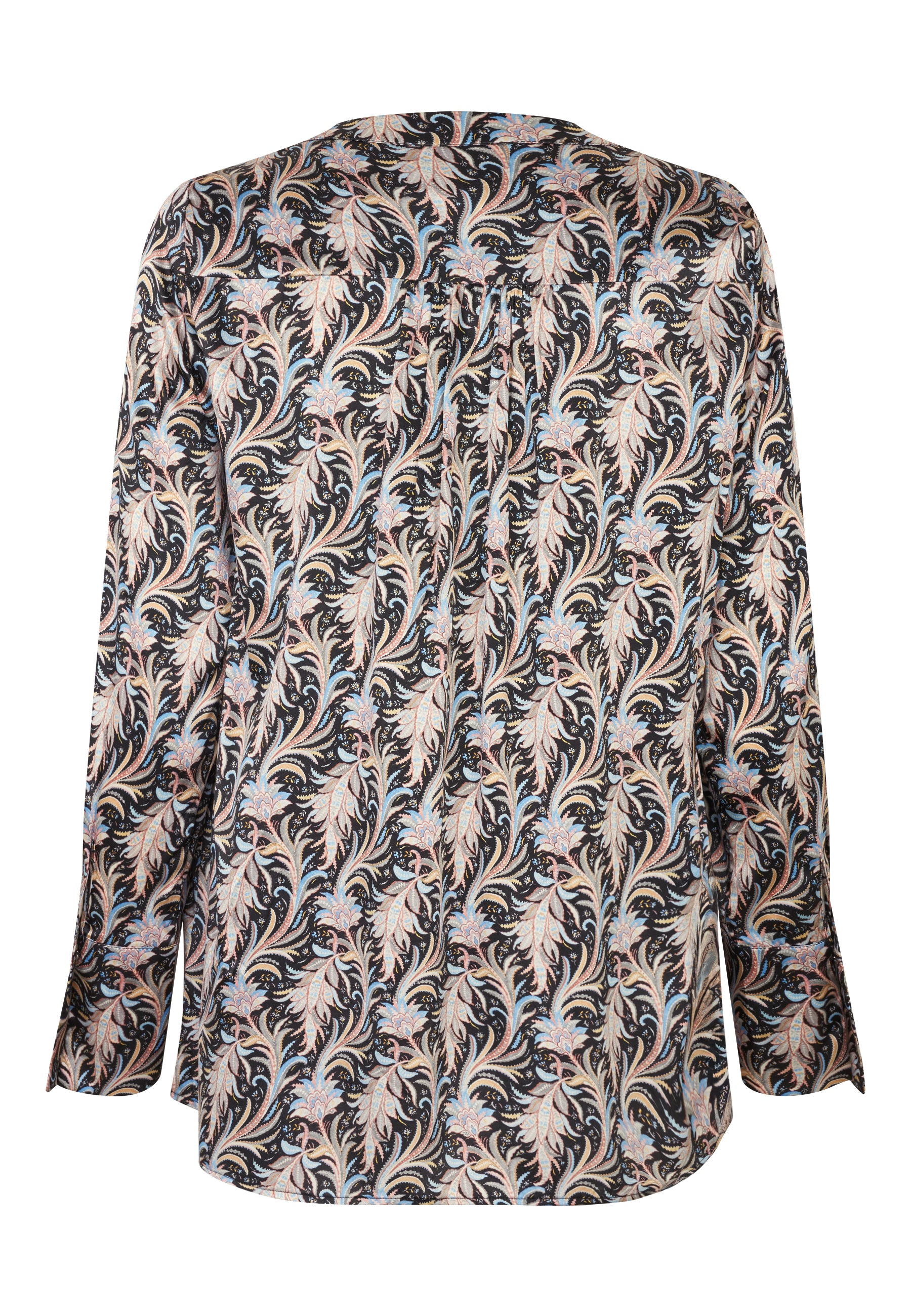 Silke tunika med V-udskæring, bærestykke med rynk for og bag samt smukke høje manchetter.