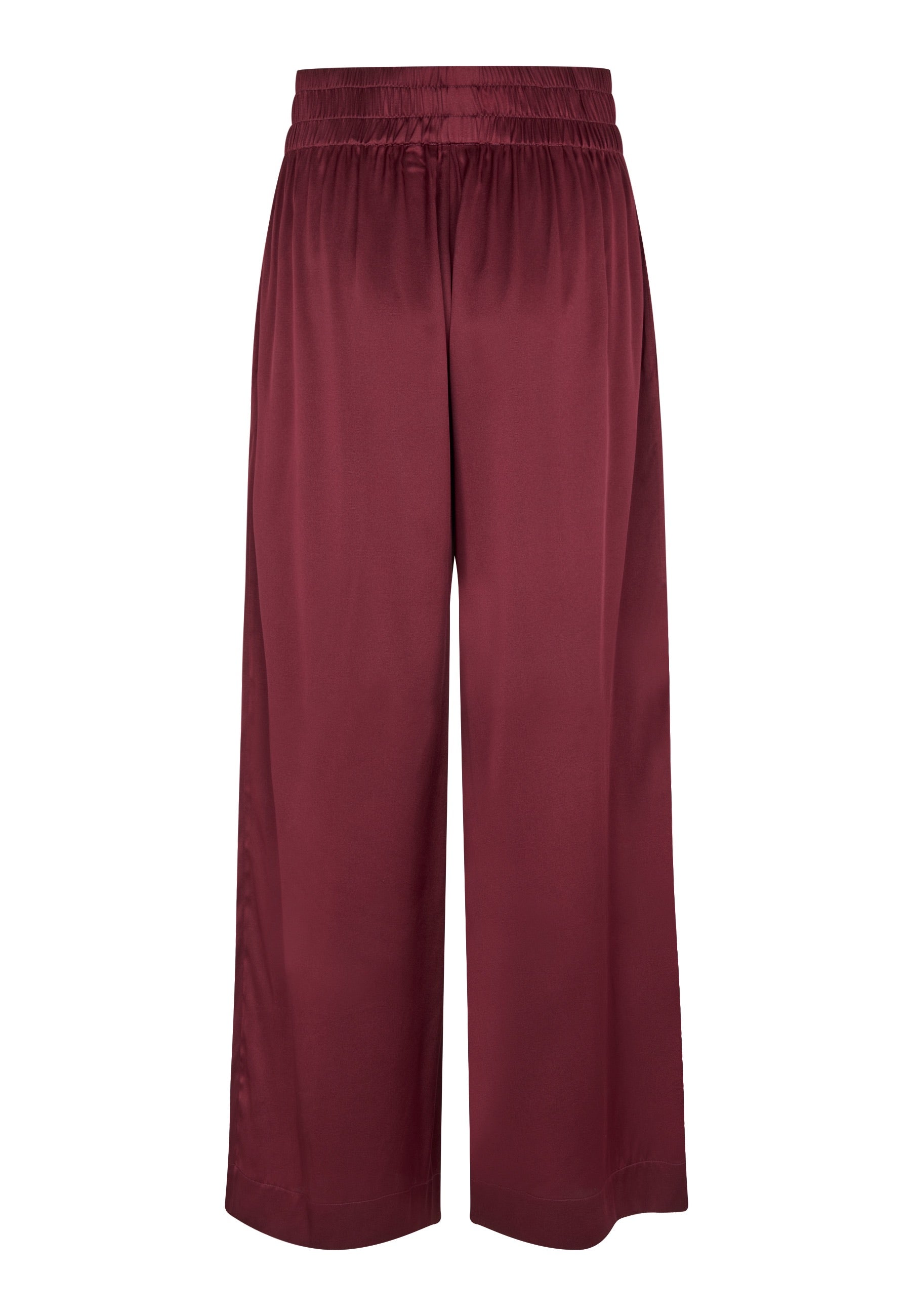 Skønne silkebukser med bred elastik linning i et smuk vinrød silke.
