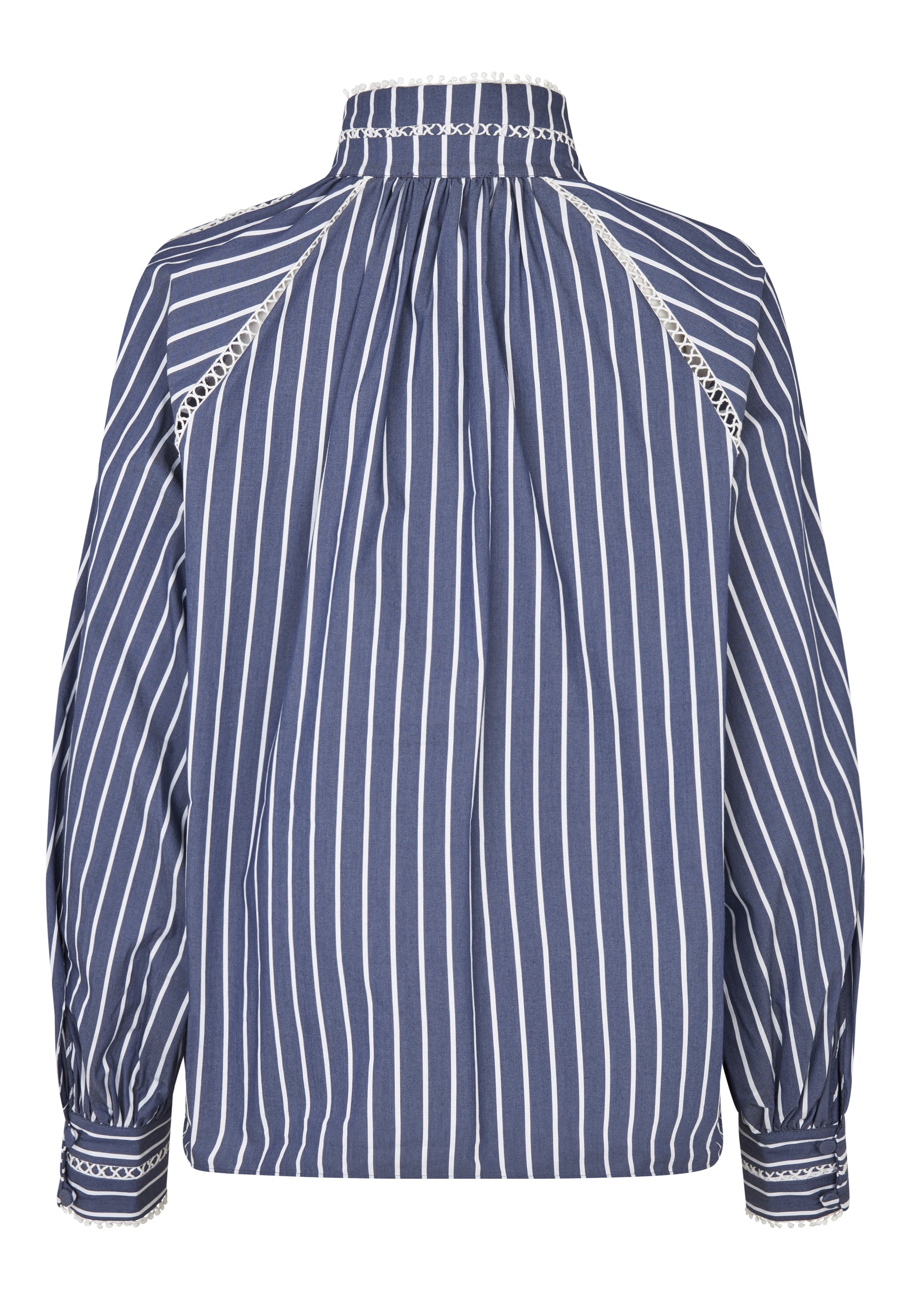 Skøn bomuldsskjorte med høj kinakrave, vidde raglanærmer, betrukne knapper og fine broderi detaljer. Skjorten har vidde ærmer og betrukne knapper.