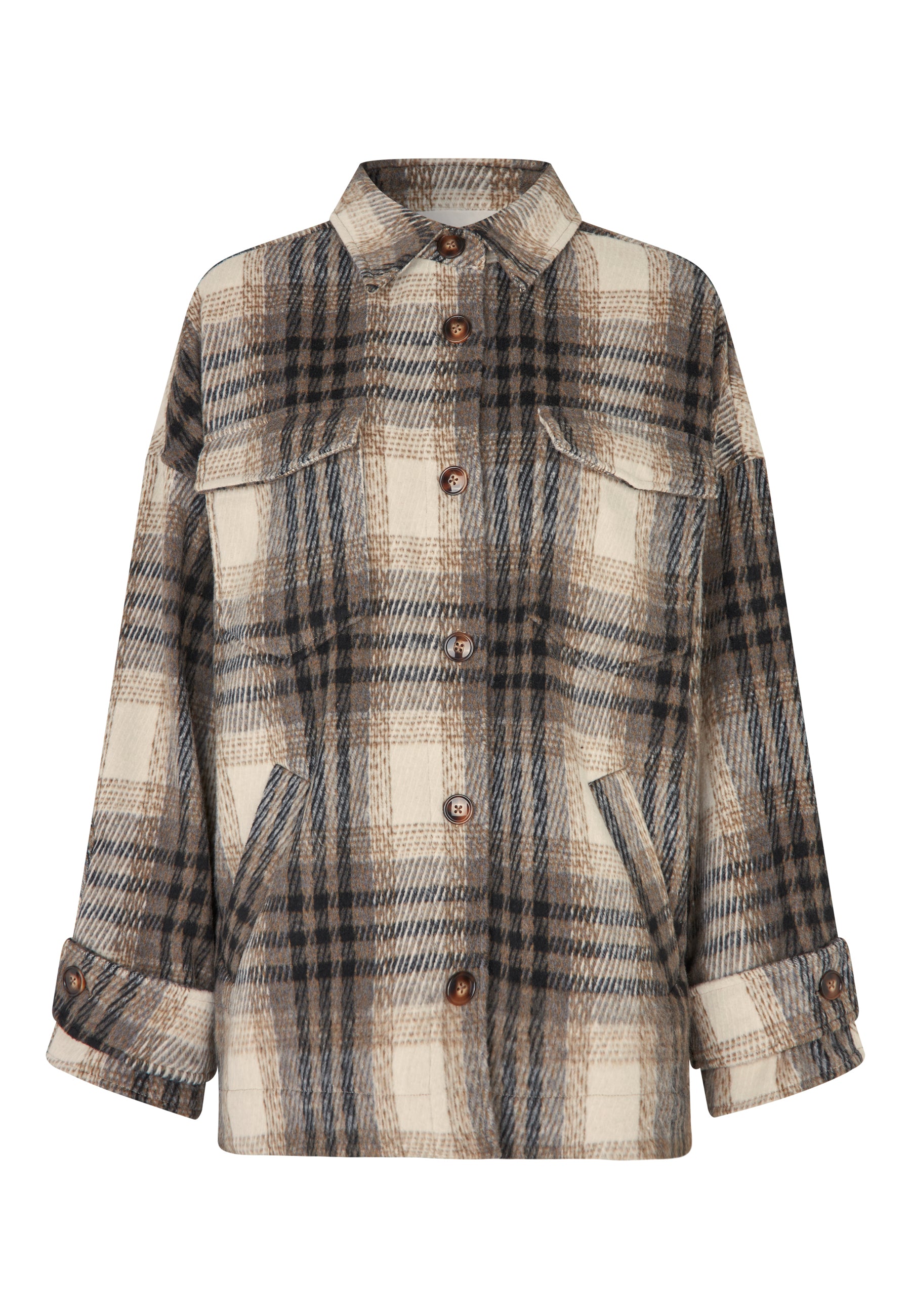Cool oversize skjorte/jakke i blødt ternet materiale.