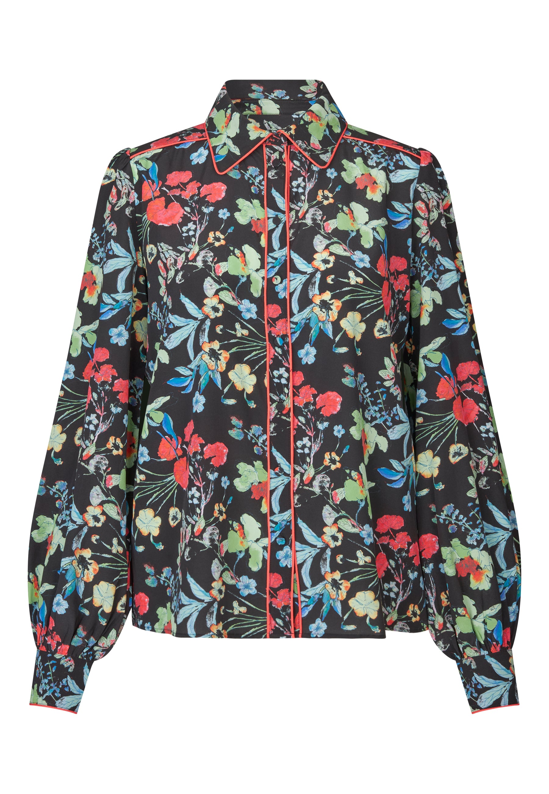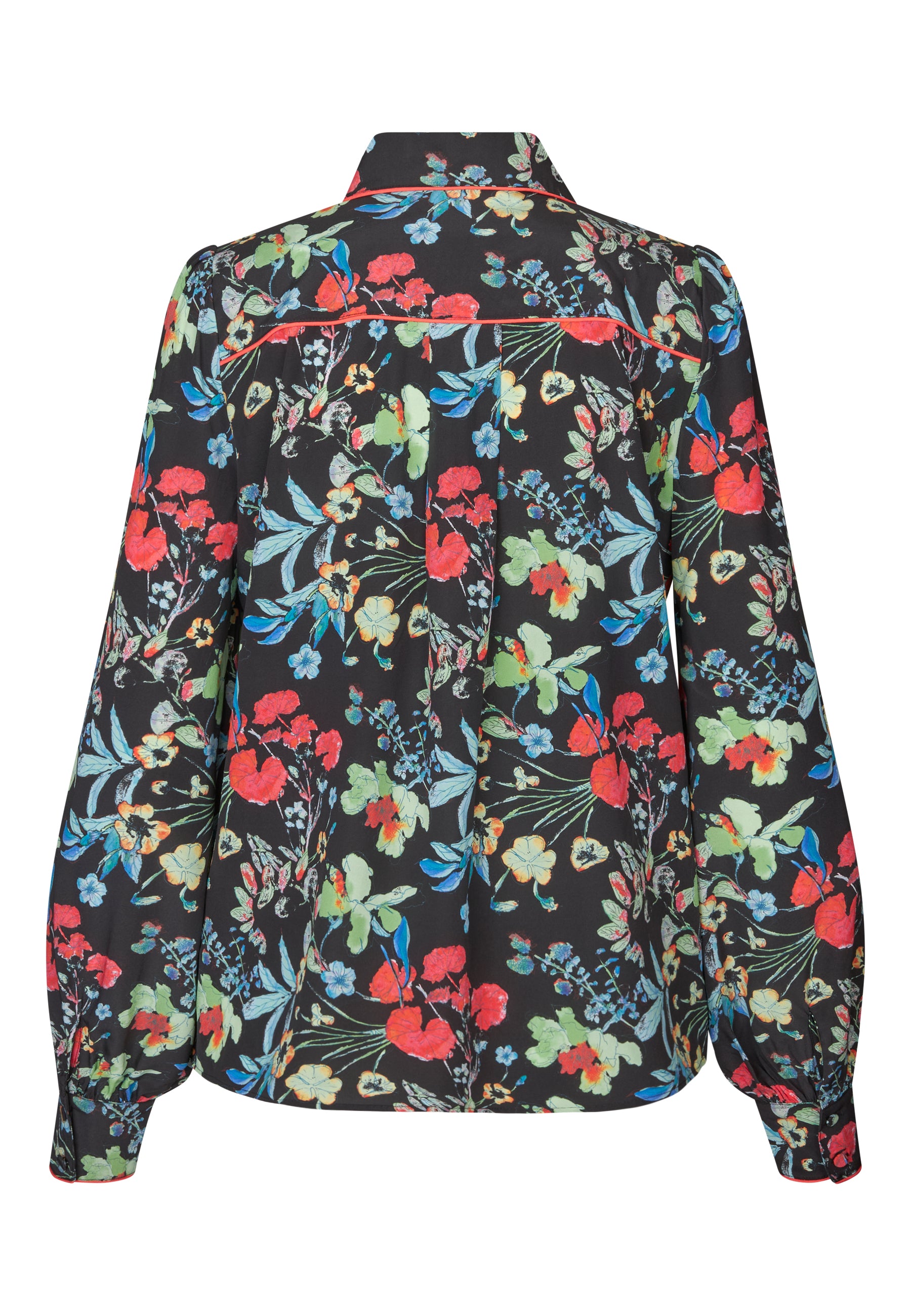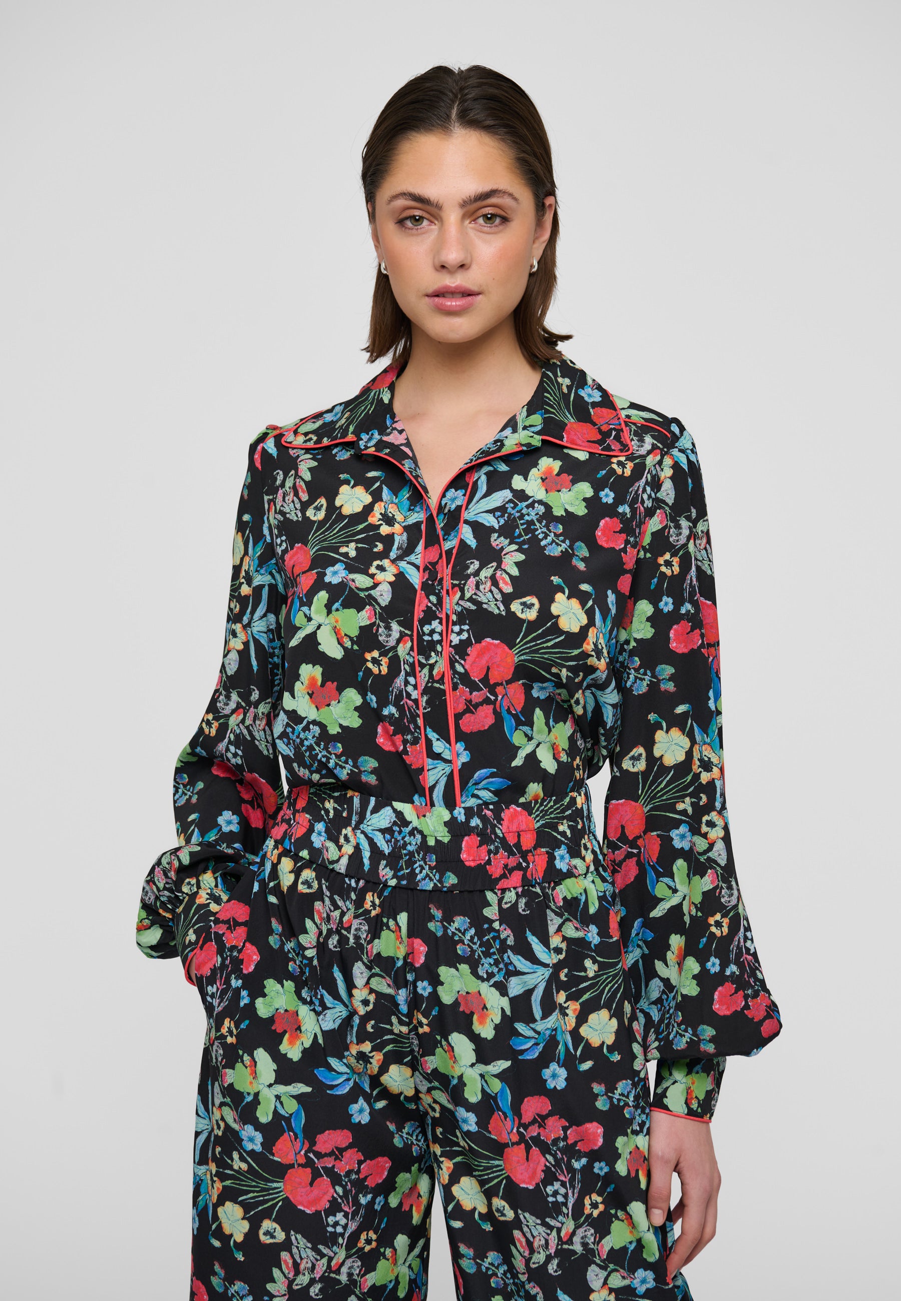 Skøn gennemknappet skjorte i et klassisk pyjamas skjorte-look. Skjorten har skjortekrave, bærestykke, manchet og fine kontrast piping detaljer.