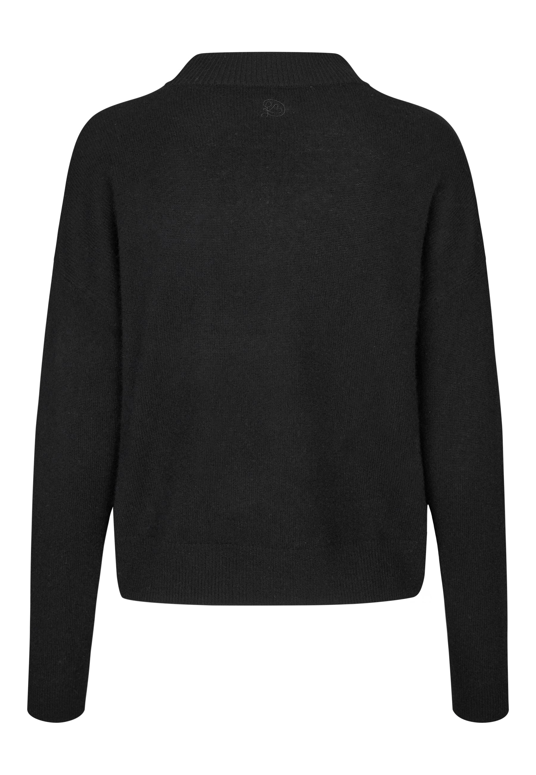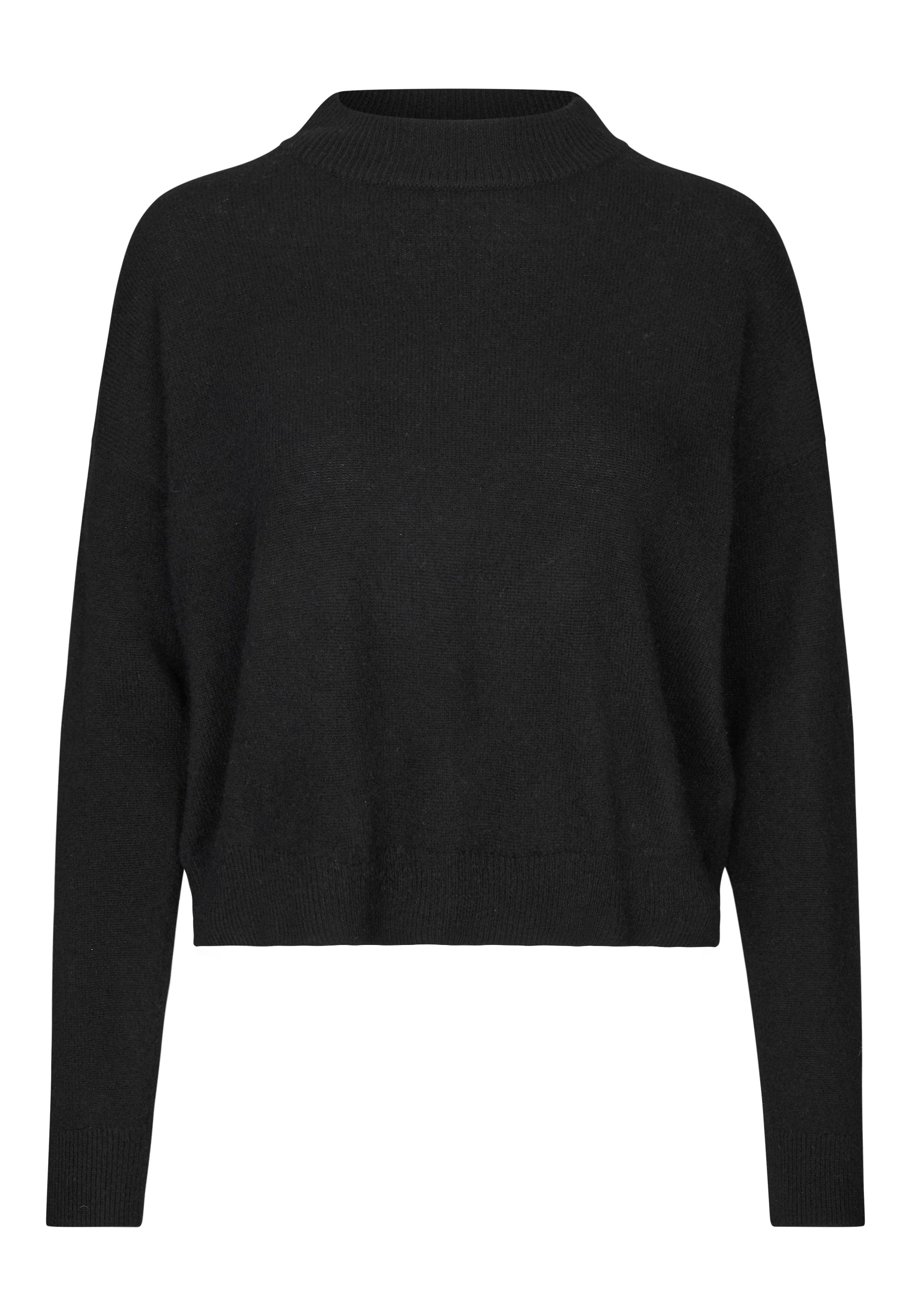 Lækker sort cashmerebluse i klassisk snit. Blusen i et kort løst fit har turtleneck, og klassiske ribkanter.